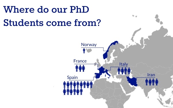 As the program has a highly international profile, divers nationalities are part of the student body. They are working each on original work related to the research lines of the program.
