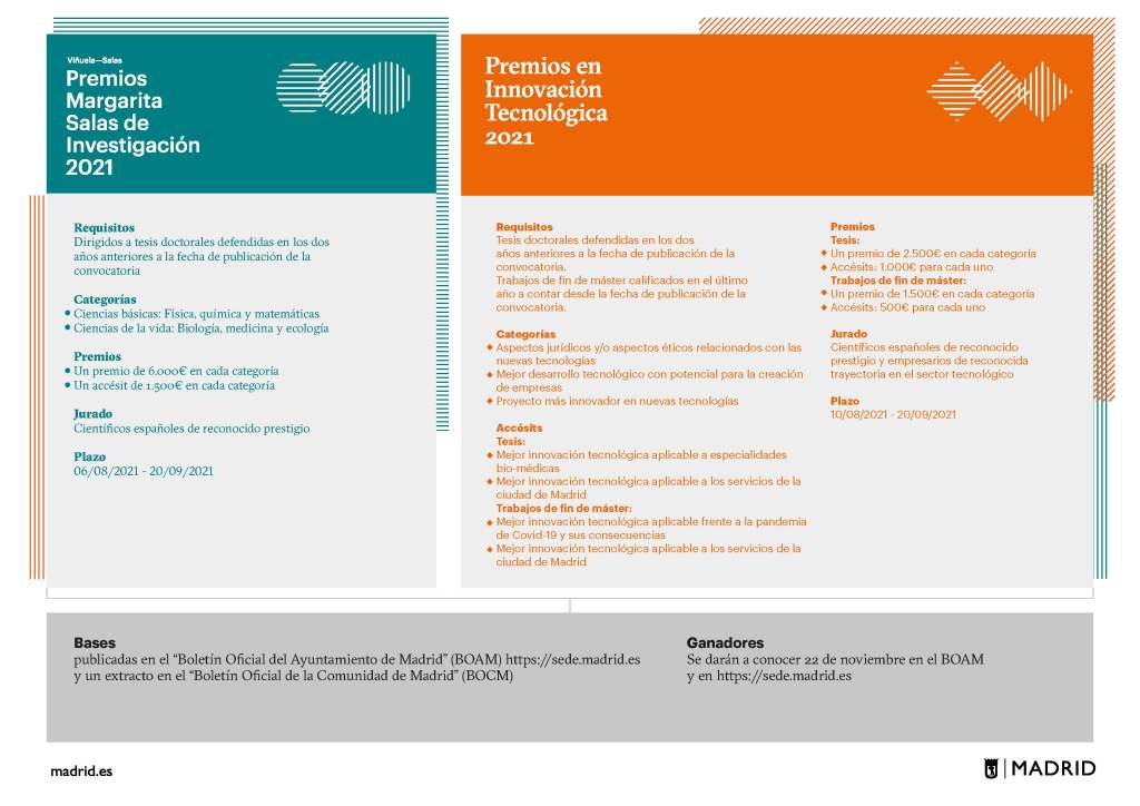 The Madrid City Council announces the Margarita Salas Award and the Recruitment of Talent in Technological Innovation Award which seek to give visibility to scientific research in Madrid, in order to promote the development of R+D+i projects and, in this way, promote the integration of research in the business world.