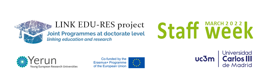 The Staff Week is organized by the University Carlos III de Madrid as part of the Erasmus+ project Joint Programmes at Doctorate Level in a European University Network: Linking Education and Research towards the European Education Area (Link EDU-RES).