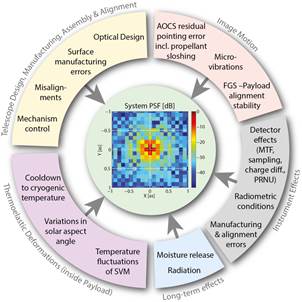The key to model spacecraft system performance is the identification of the performance chain from error sources to the final measurement product, e.g. infrared image. The enablers for analysing accurately the performance chain are the metrics capturing precisely the mission performance requirements. Given the performance chain and metrics an approach is defined that is well balanced between level of detail and responsiveness to allow fast but sufficiently accurate system analysis as well as design for attitude control.