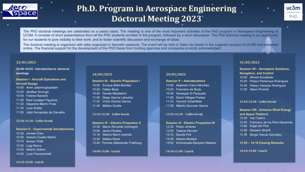 Doctoral meetings are celebrated on a yearly basis and are one of the most important activities of the doctoral program in Aerospace Engineering at UC3M.