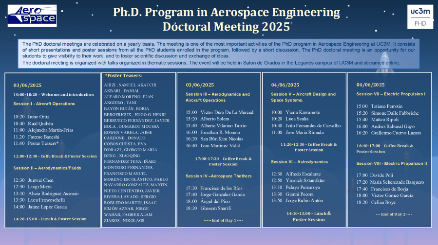 All videos from the PhD Aerospace UC3M Doctoral Meetings 2025 are available oneach student’s profiles.
